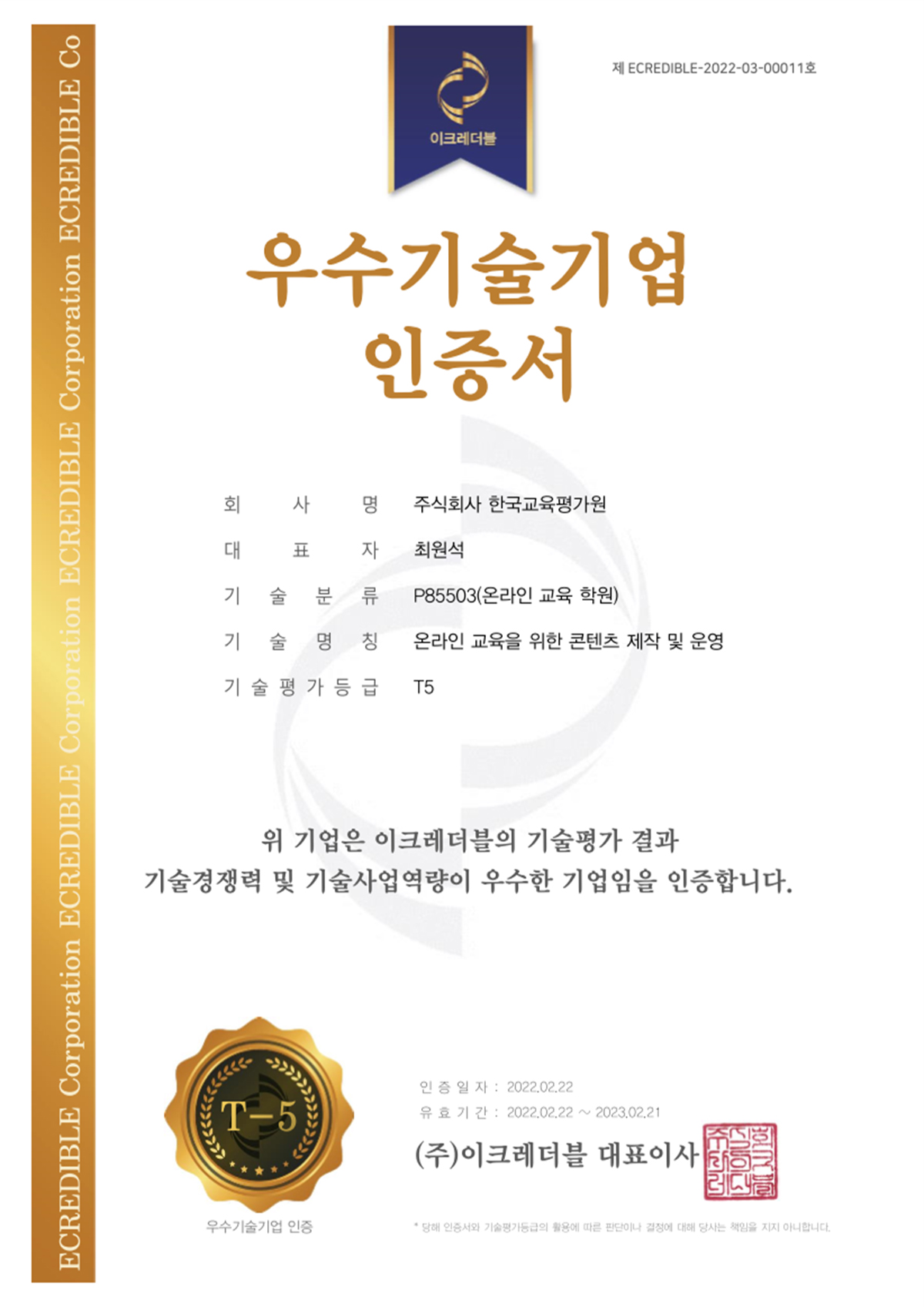 2022.02 ¿ì¼ö±â¼ú±â¾÷ ÀÎÁõ T5 Ãëµæ